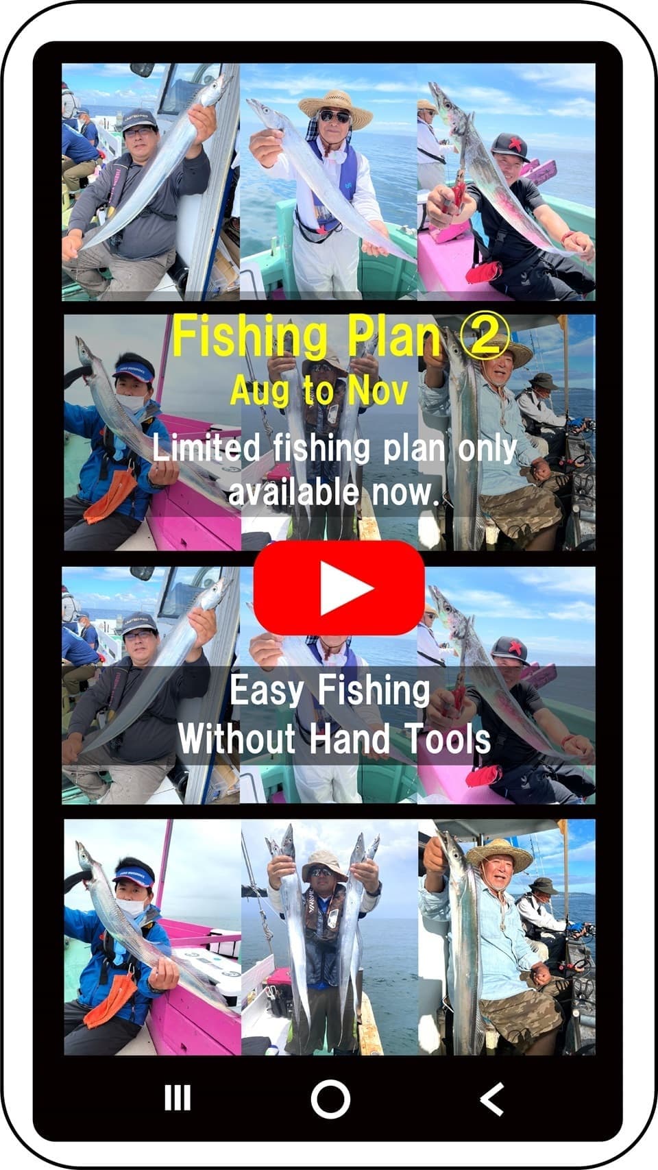 この釣り体験プラン②は、6時間のプランです。大阪湾で一番人気のタチウオ釣りにご案内します。ユニークな仕掛けで、魚に針を引っ掛けて釣るスタイルはゲーム性が高く、大変人気があります。ご家族連れやお子様と大人のグループも大歓迎です。